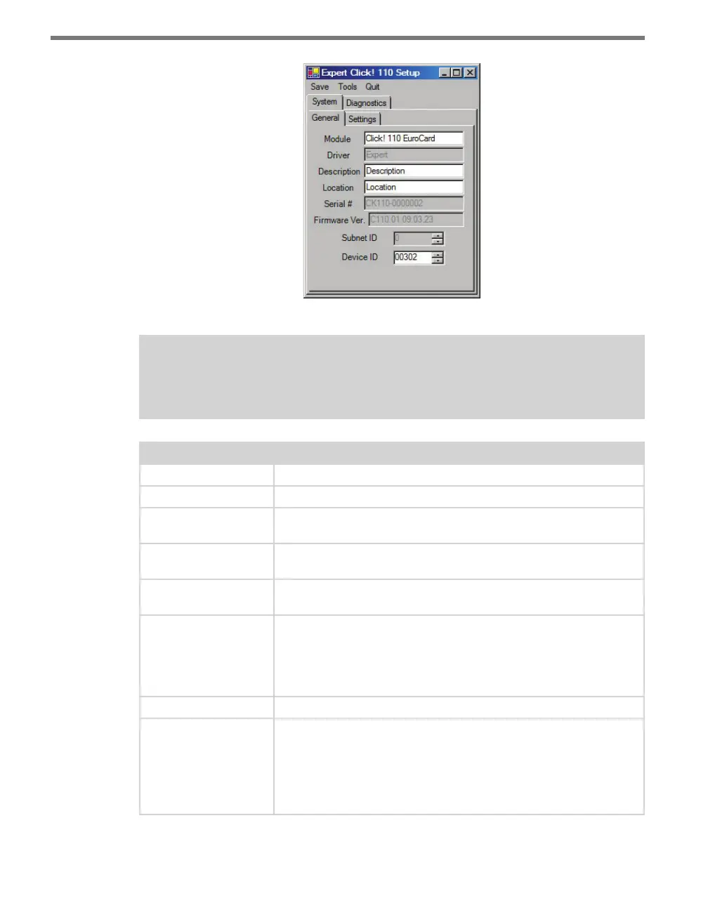 Table 9.15 – Expert Driver General Tab