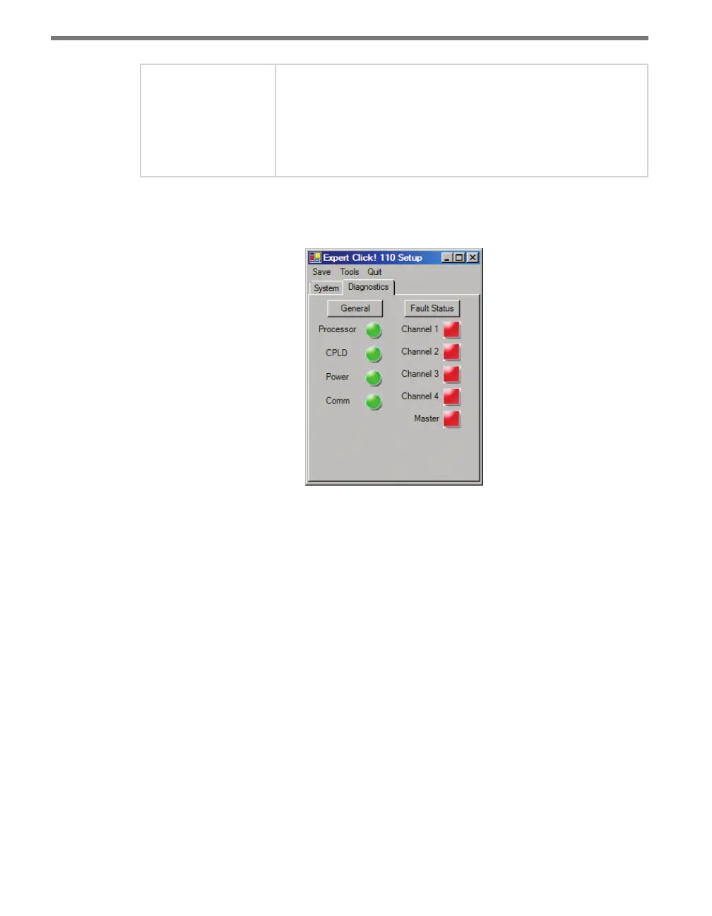 Click Fault Status to check whether any of the channels are indicating a fault condition. If