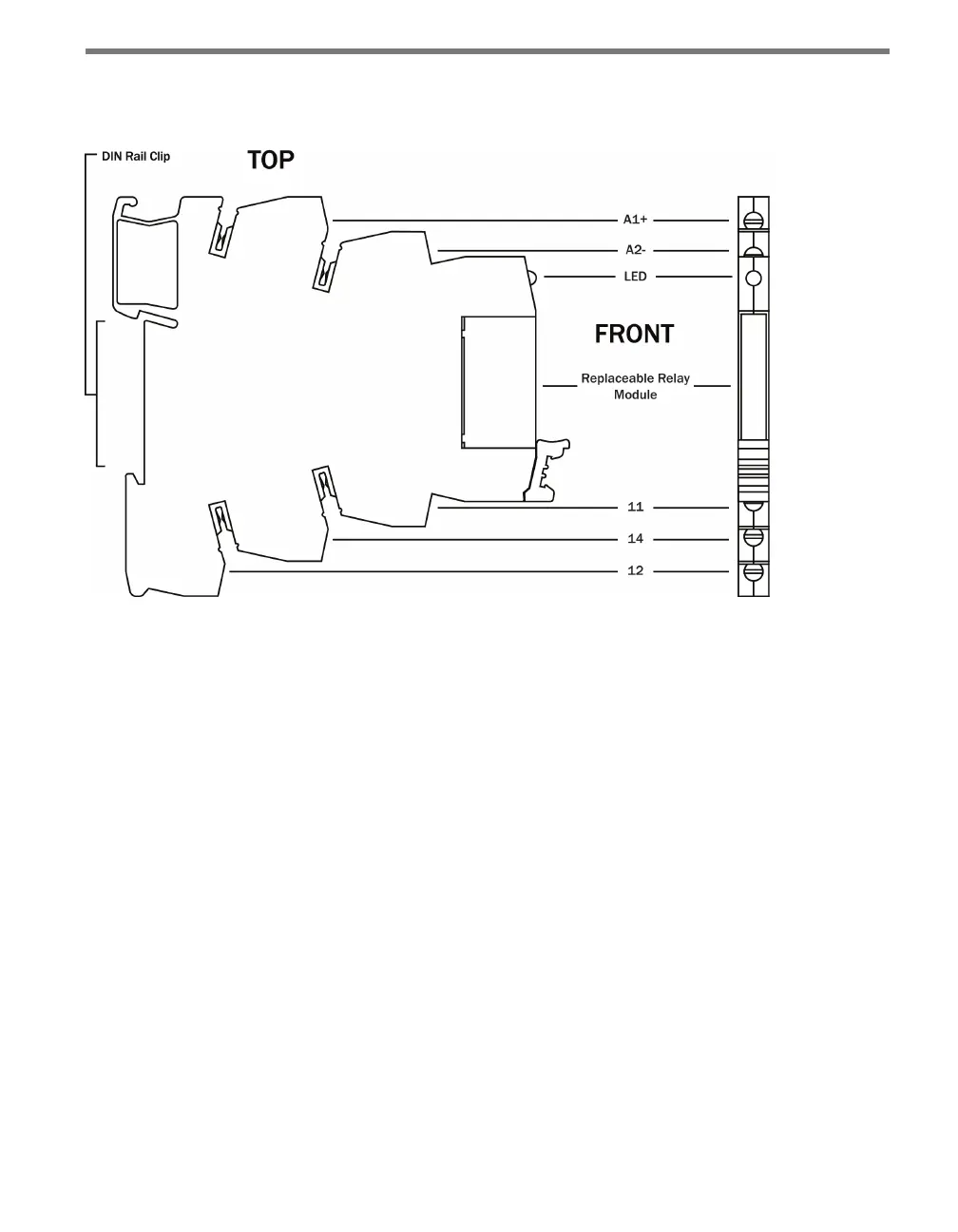 On the top, or coil, side of the module are two terminals marked A1+ and A2–. ese termi-