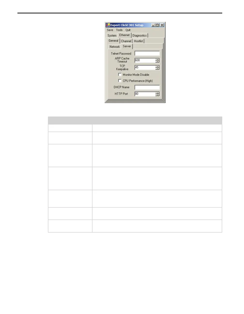 Table 23.9 – Expert Driver Server Tab