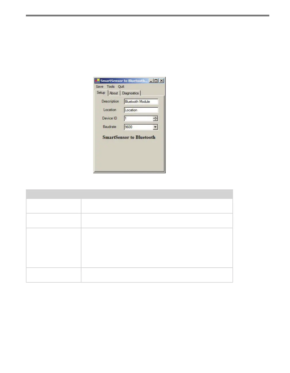 When you open the SmartSensor driver, you will see three tabs: Setup, About and Diag-