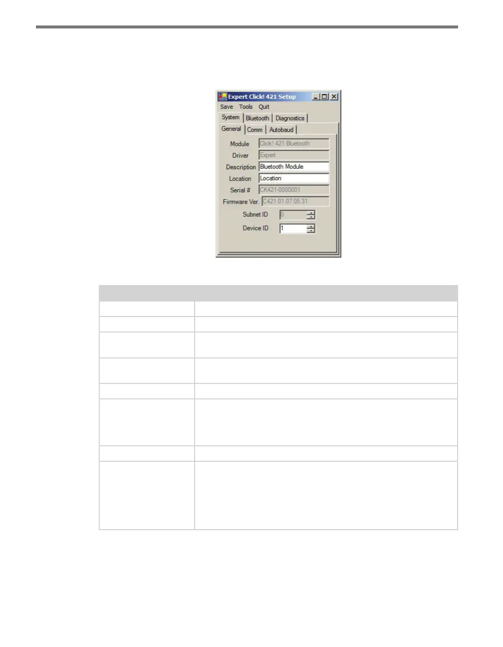 e System tab is divided into three subtabs: General, Comm, and Autobaud.