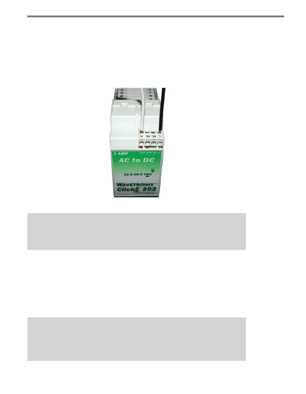 Use the steps below to properly wire AC power to the top of the Click 201/202/204:
