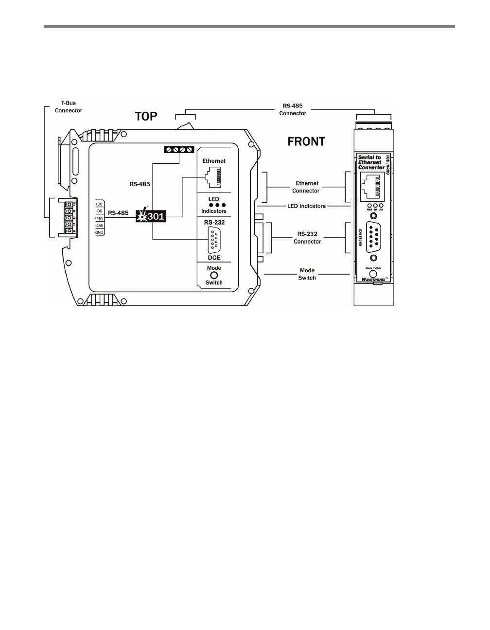 and provides power and RS-485 communication to the device. It also passes RS-485 com-