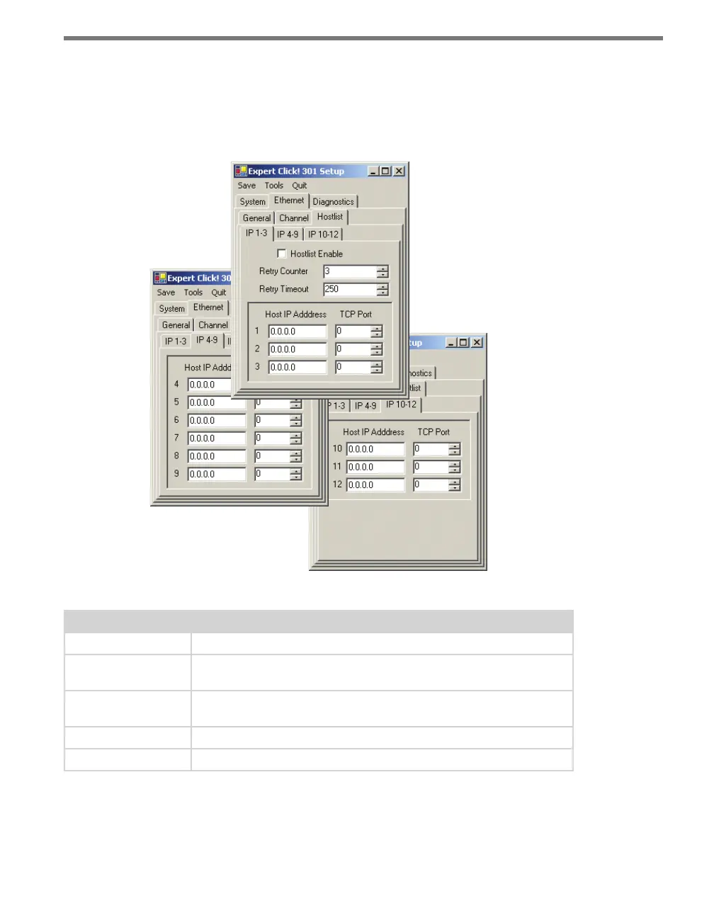 IP 10-12 third-level tabs. e three third-level tabs below Ethernet > Hostlist allow you to