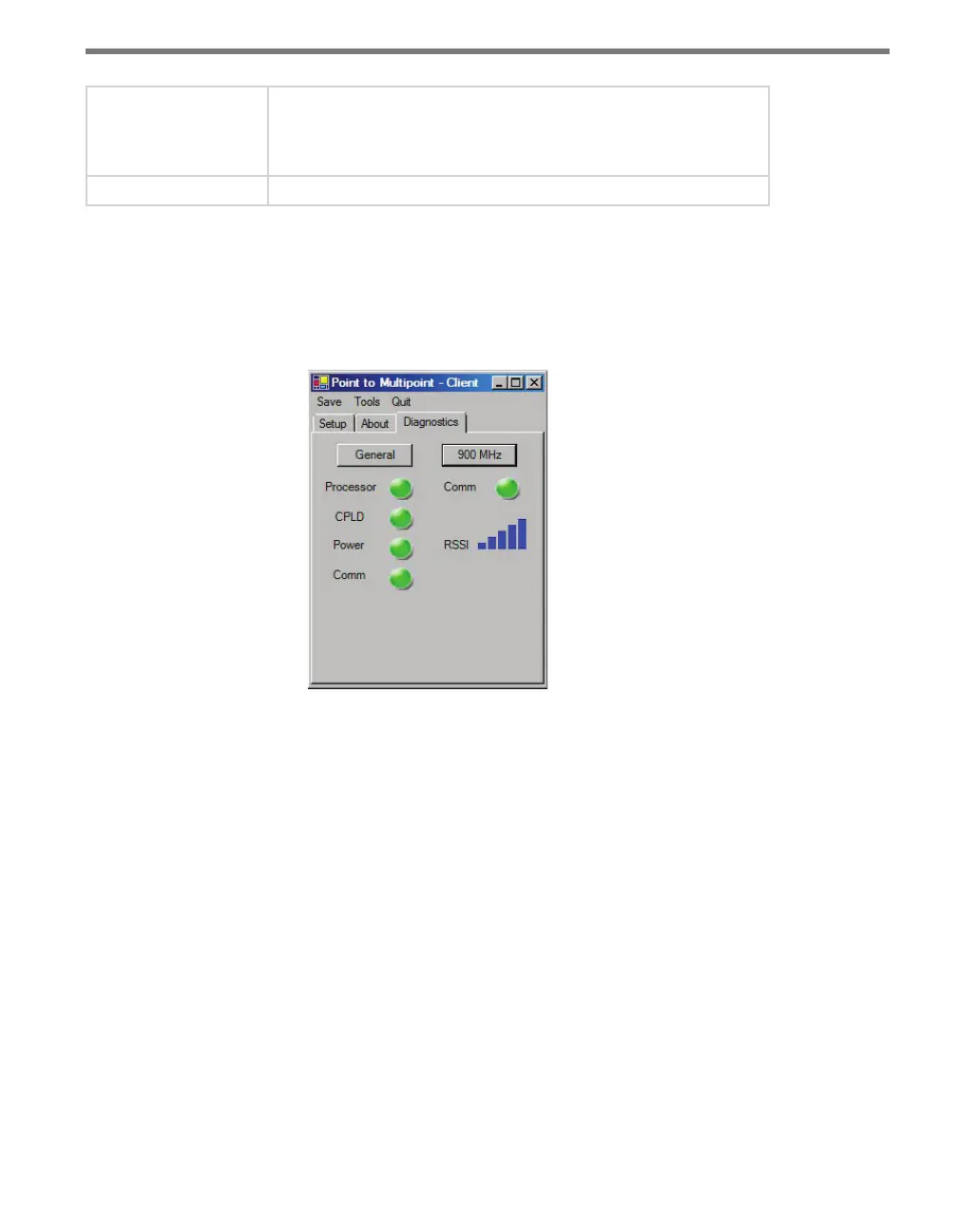 the General or 900 MHz buttons to run diagnostics on the items listed below each button.