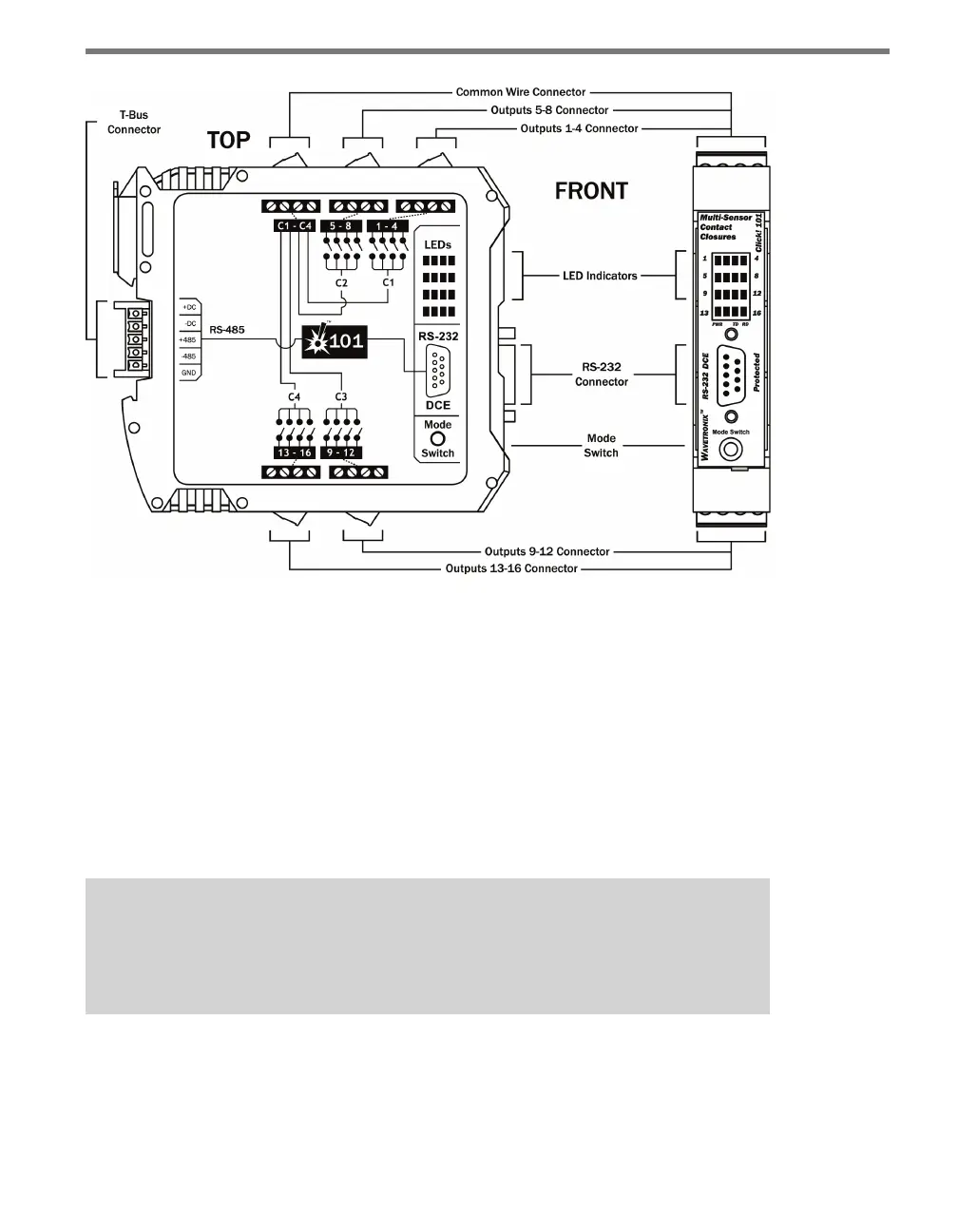 and provides DC power and half-duplex RS-485 communication to the device. e RS-485
