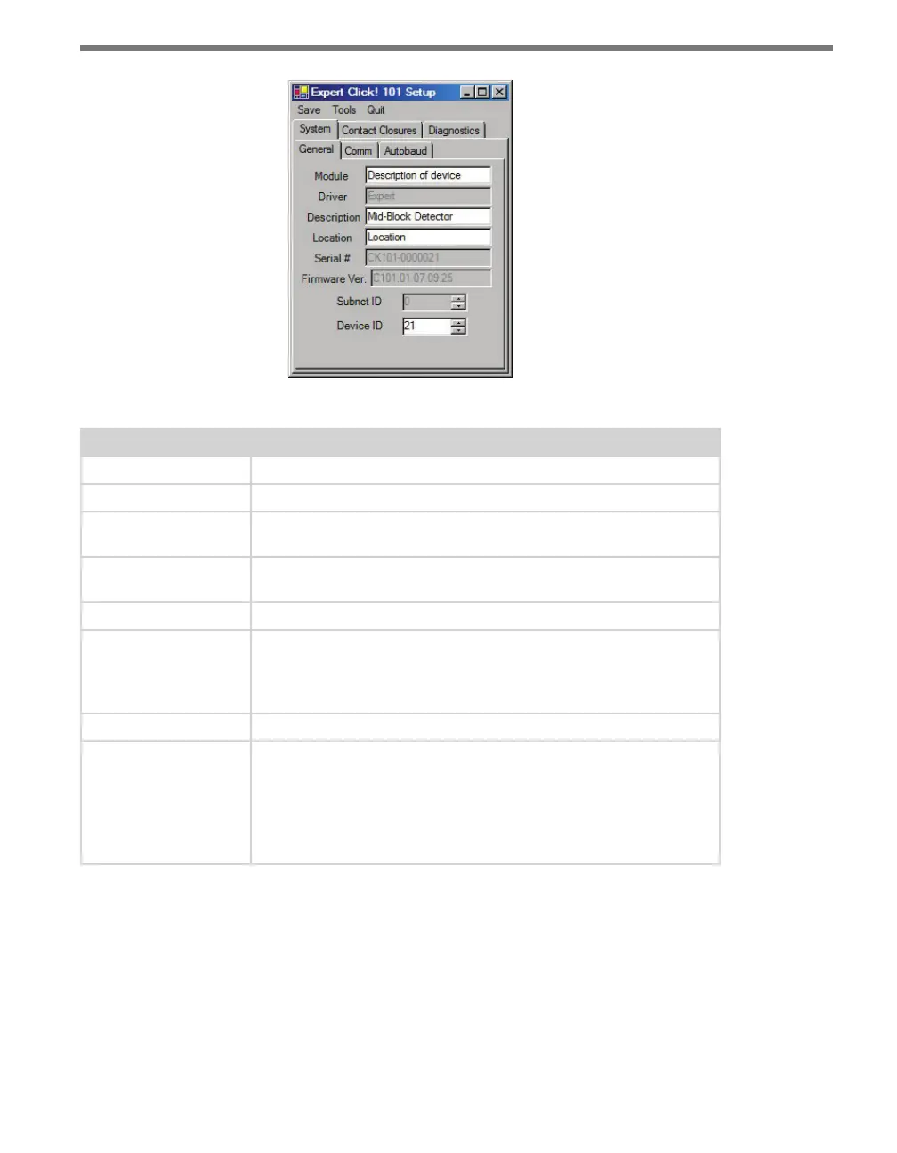 Table 7.2 – Expert Driver General Tab