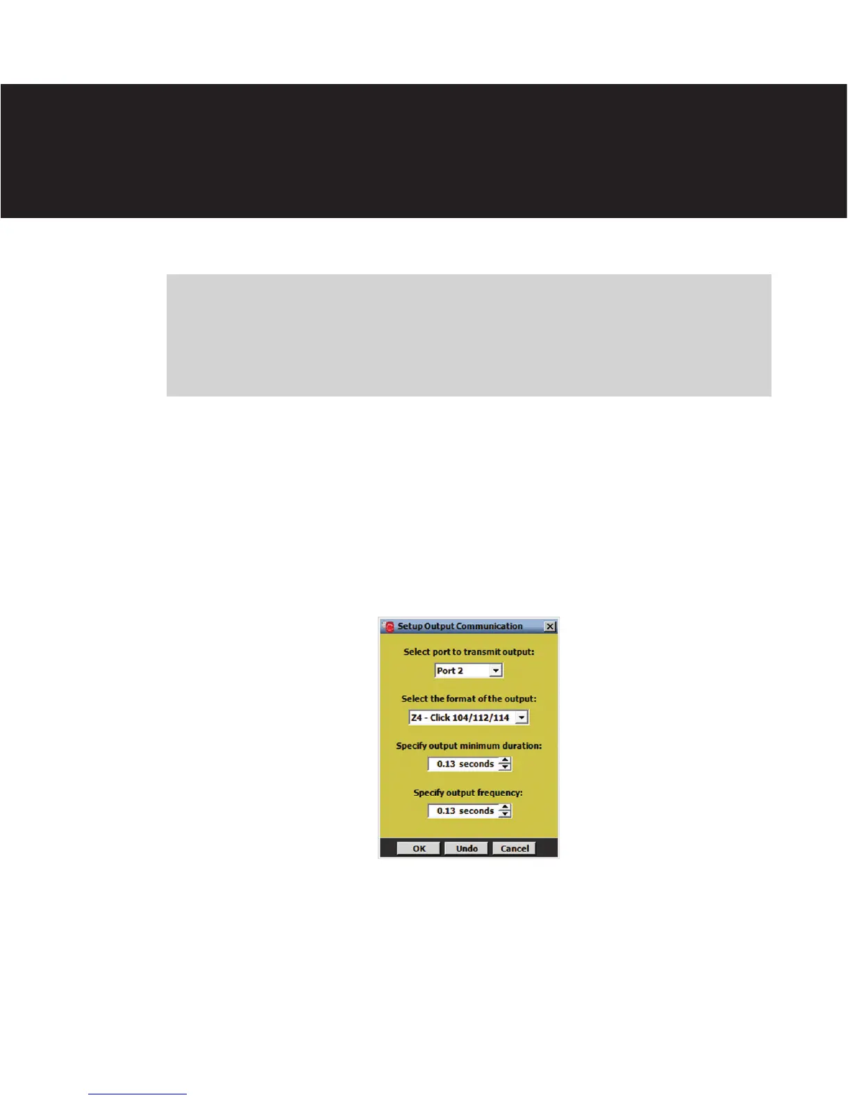 is section describes the four settings contained in the Output Communication Setup
