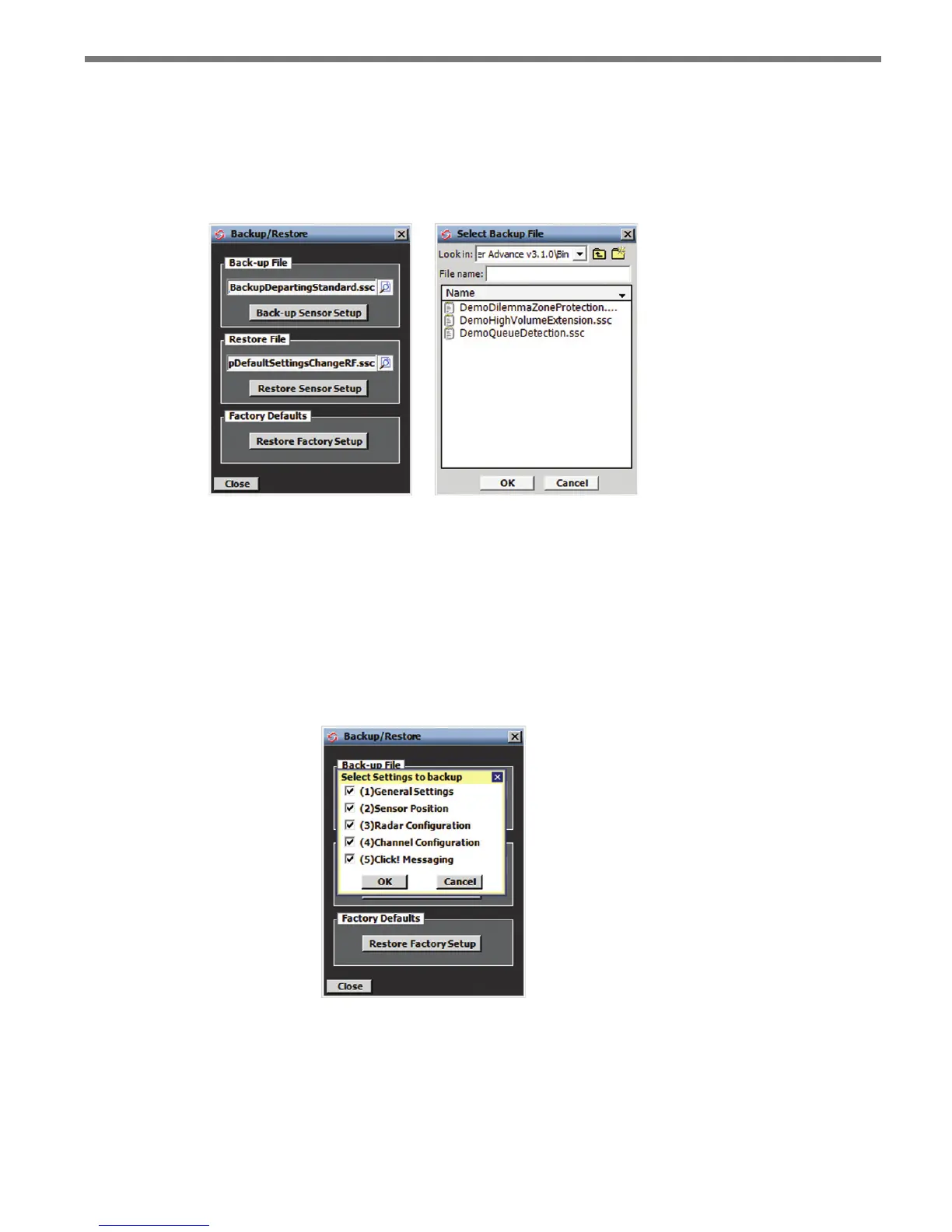 Click the Back-up Sensor Setup button to save the current conguration. e Select Set-