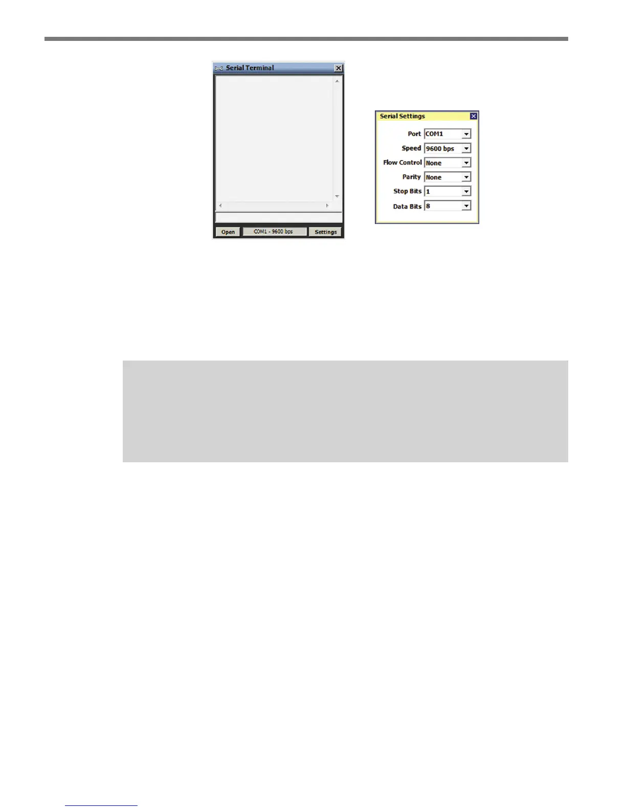 Click the Settings button to congure the serial port for the terminal session. e resulting