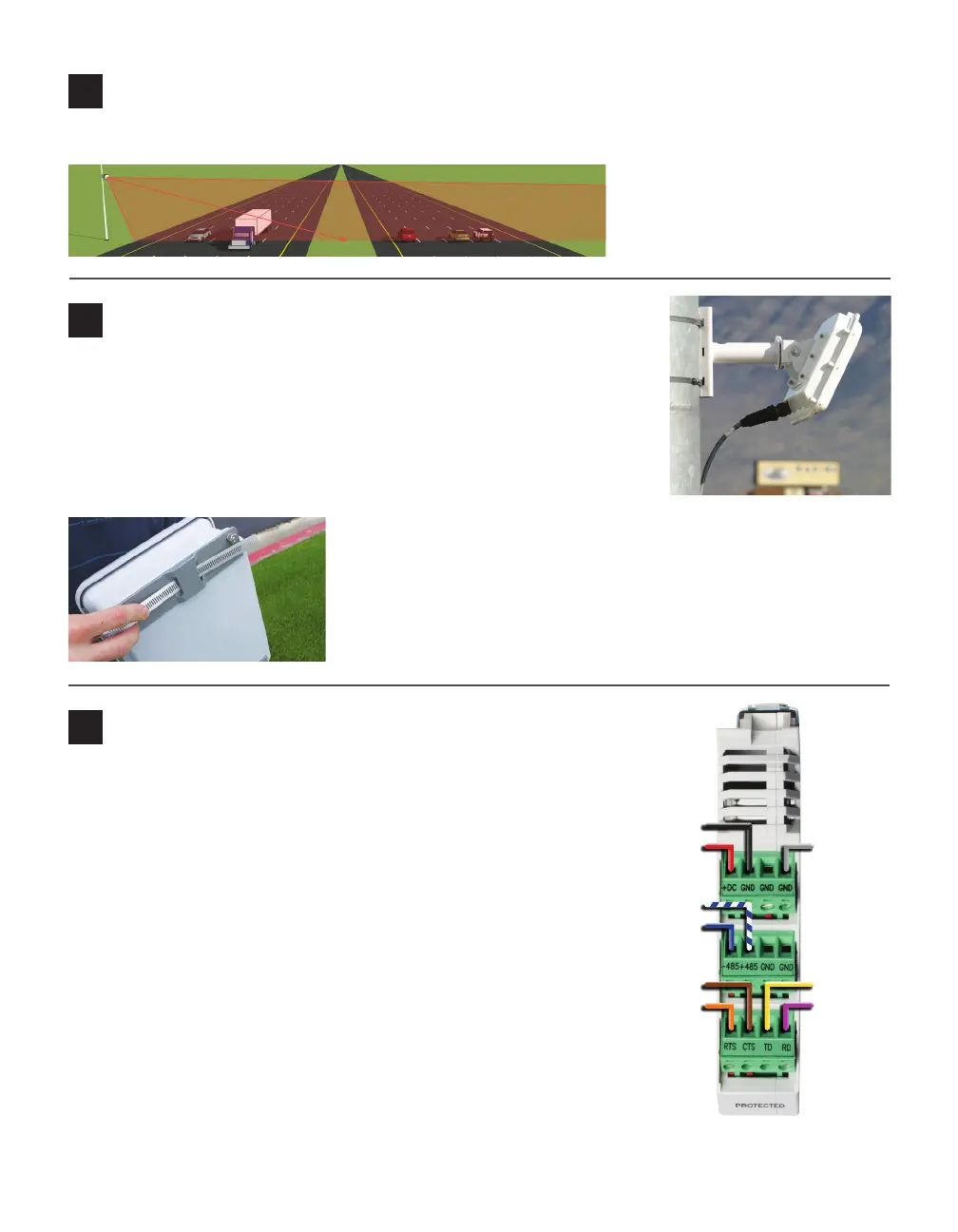 3 To reduce strain, strap the cable to the pole or run it through a conduit,