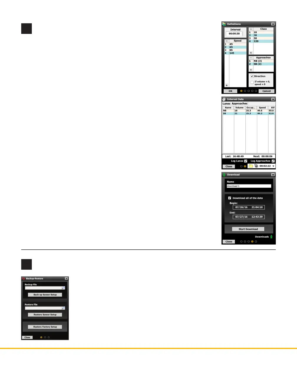 To use a backup le, use the Restore Sensor Setup option on the same screen.