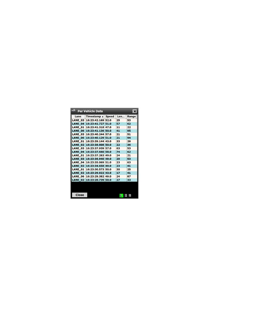 Figure 73. Per Vehicle Data screen