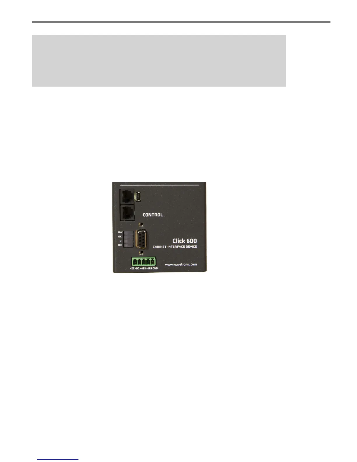 control bus. ese ports allow you to congure any sensors connected to the Click 600. You