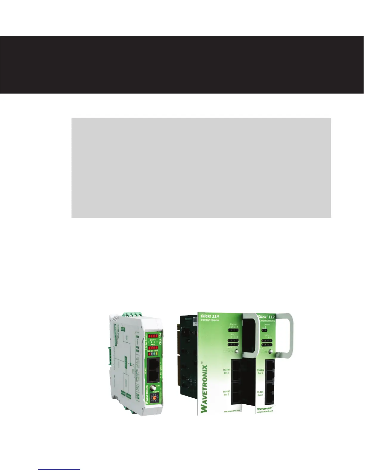 Click 104 DIN rail contact closure module or the Click 112/114 detector rack cards (see