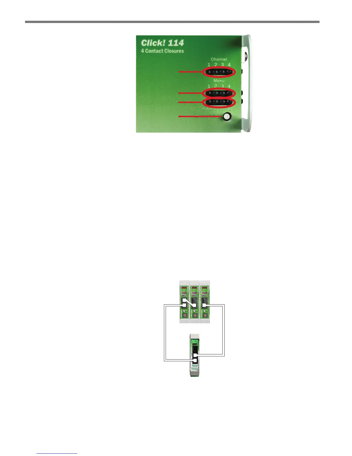 1 Mount the Click 104 on a DIN rail over a T-bus connector. is connects the device’s