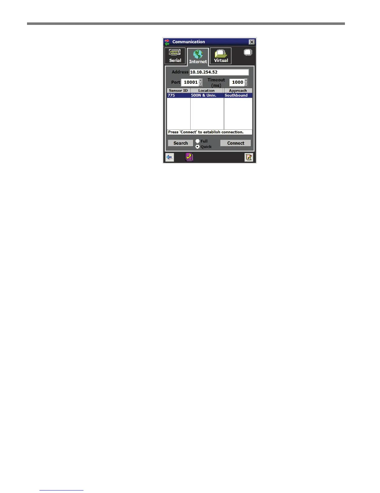 Figure 5.6 – Internet Connection Screen