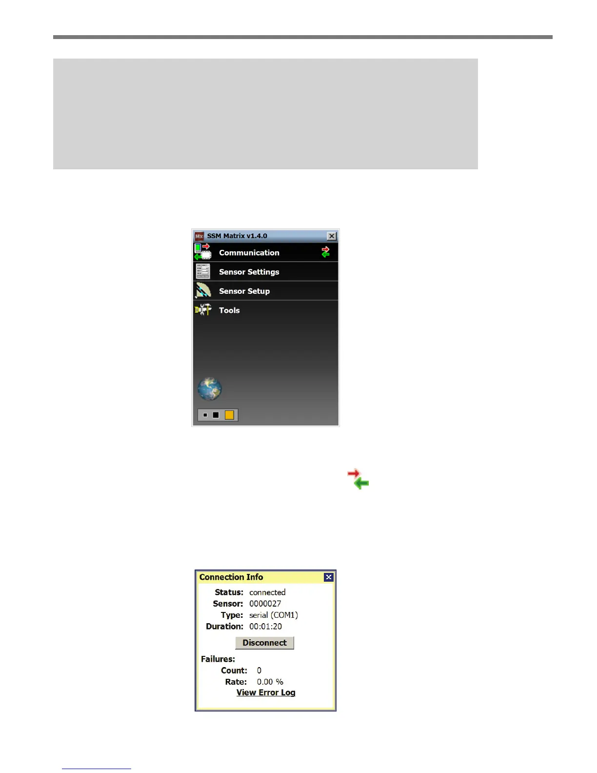 When a connection is made to the SmartSensor Matrix, the main menu will appear and all