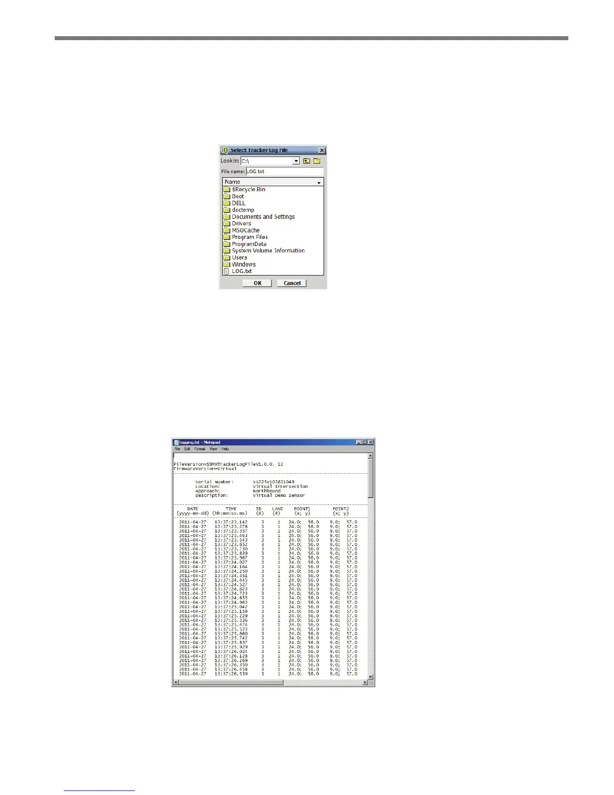 Click on the open folder icon to select a log le. e Select Tracker Log File screen allows