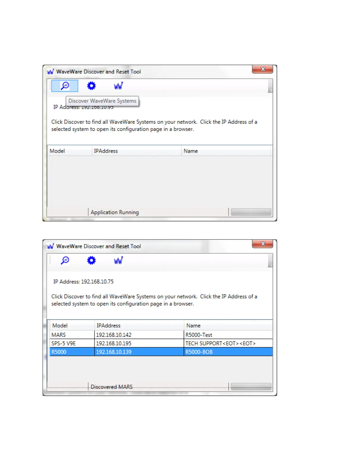Figure 2 – WaveWare Discover and Reset Tool - Discovery