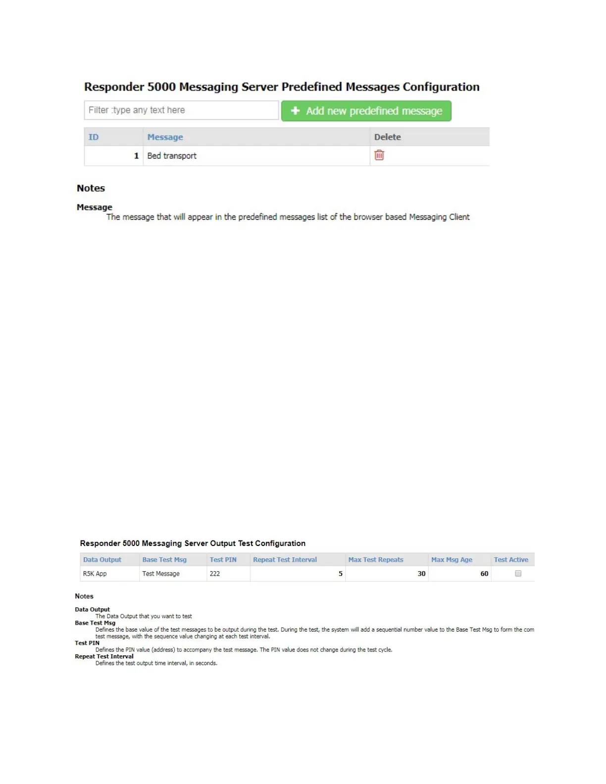 The Add new predefined message button allows you to create a new record. To create a new record,