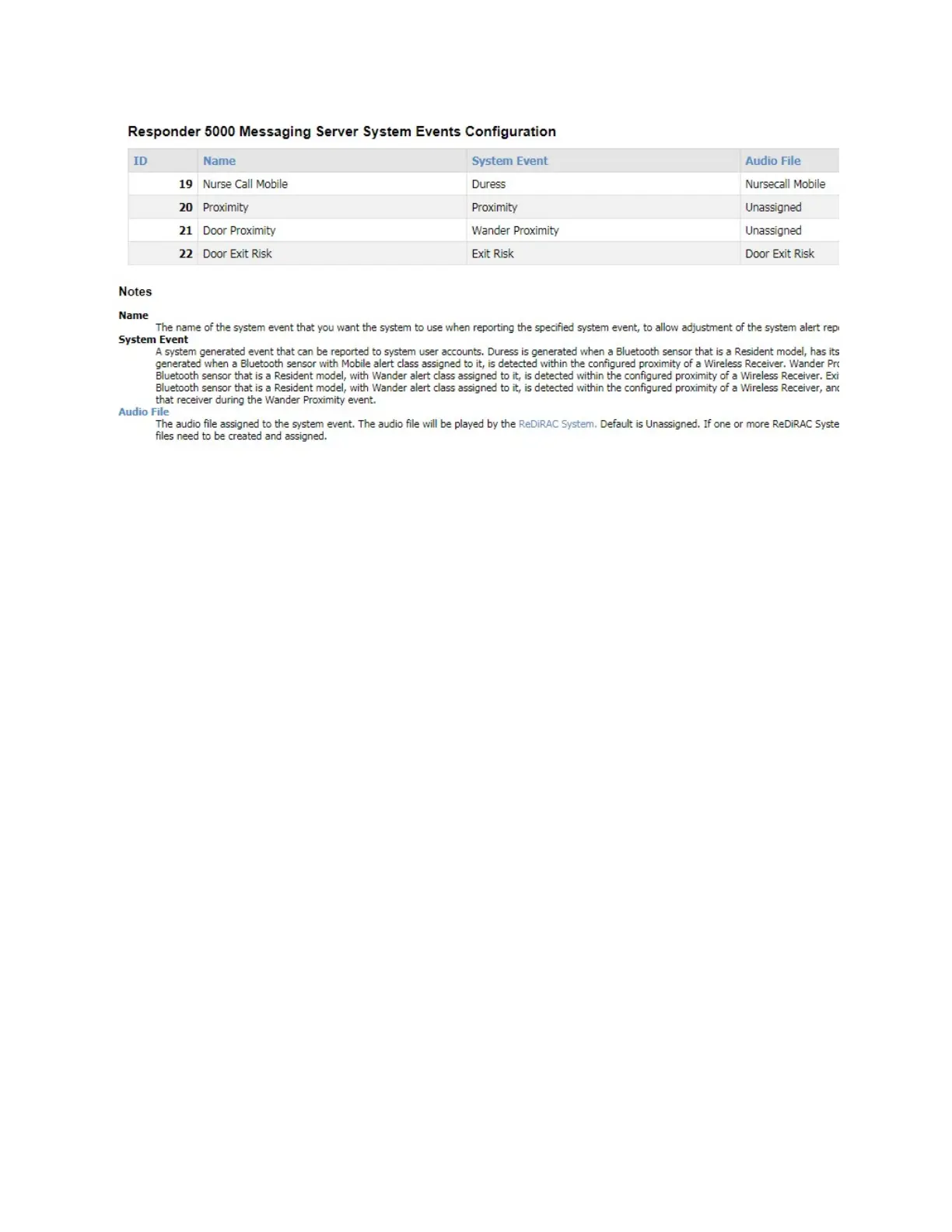 The audio file assigned to the System Event. The audio file will be played by the either the audio file to