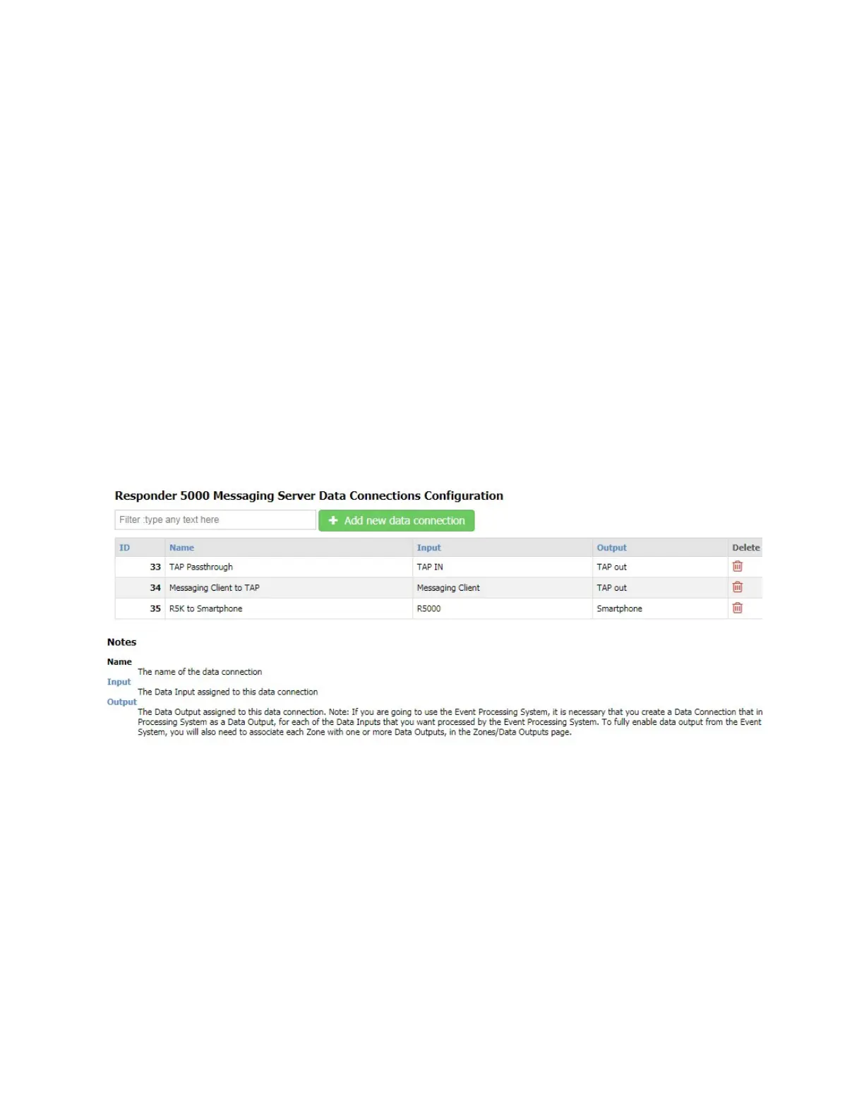 Data connections are required to be configured into the system to allow RMS to perform any processing