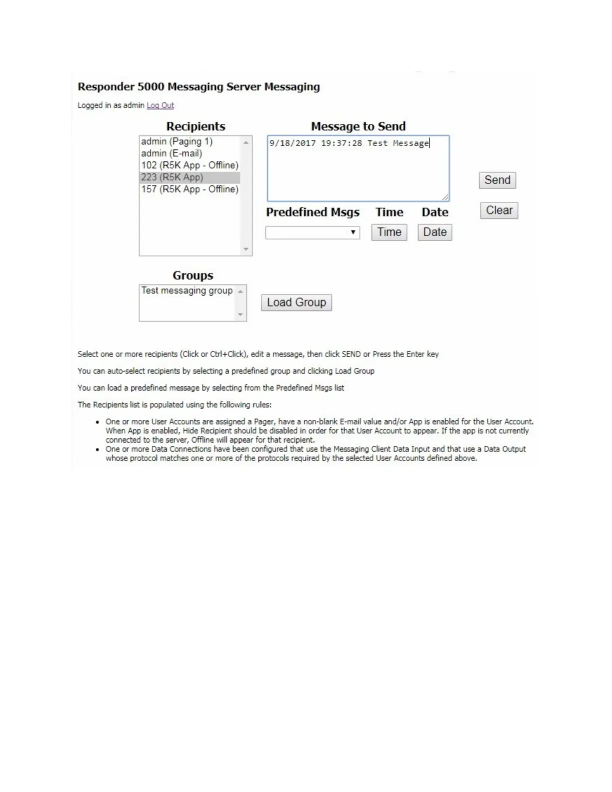 connected to the server. At least one recipient that is not Offline need to be selected before