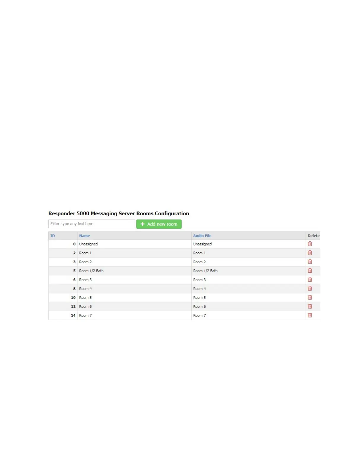 The Add new room button allows you to create a new record. To create a new record, click the Add new