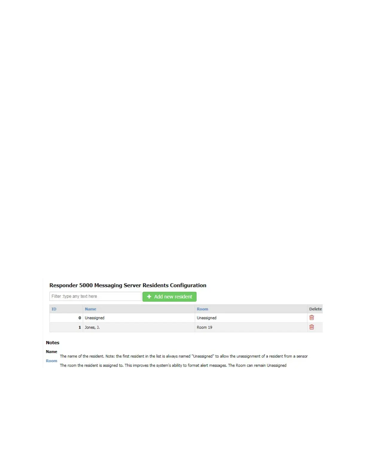 The Residents page allows configuration of residents. The Residents menu item is only available when