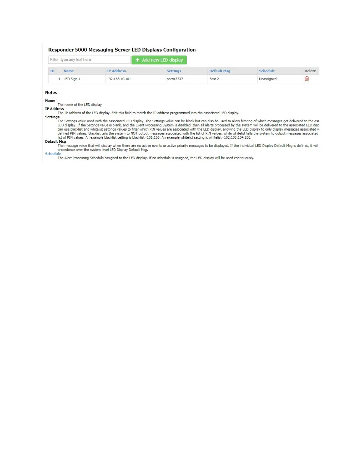 used to allow filtering of which messages get delivered to the associated LED display. If the Settings