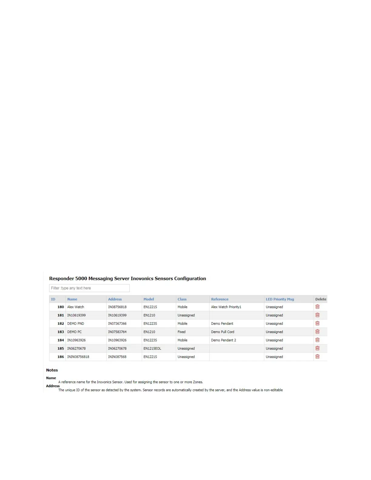The Inovonics Sensors page allows configuration of Inovonics sensors.