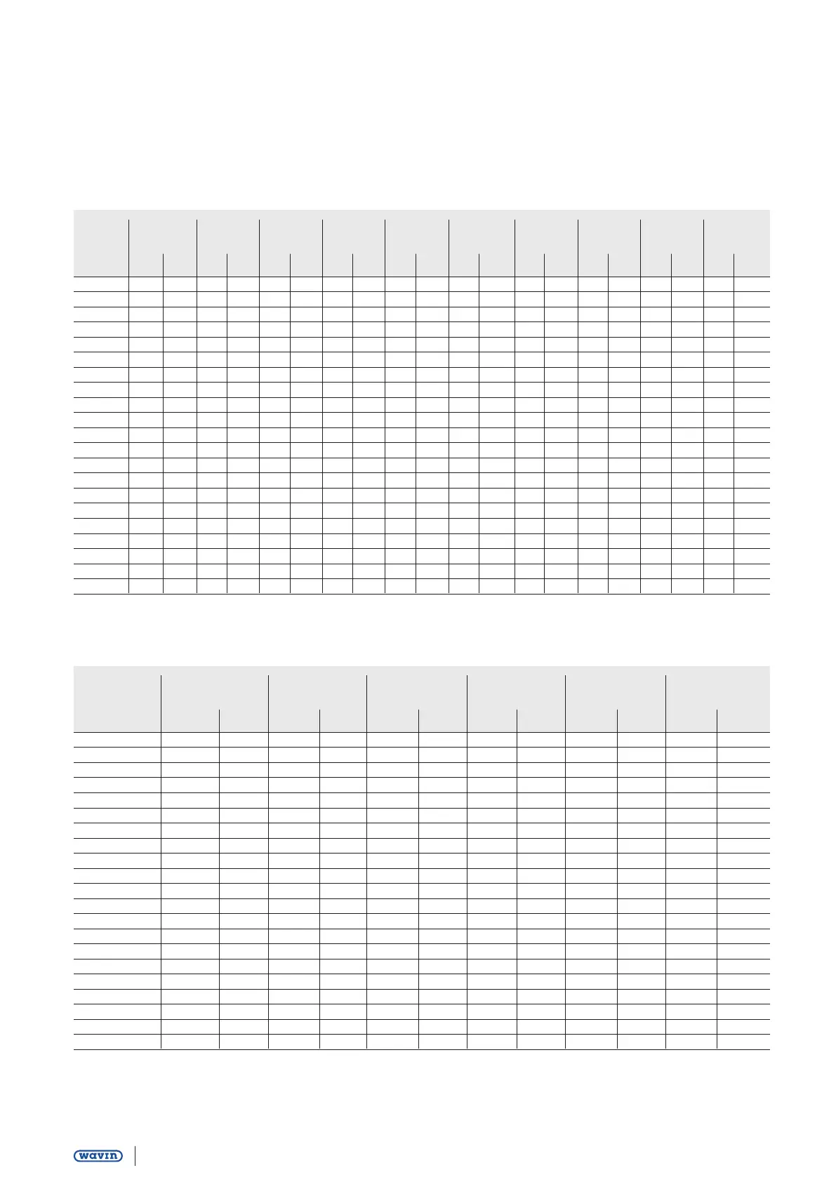 Table 14: Sizing table for underground and collector pipes using Wavin AS+, filling factor 0.5.