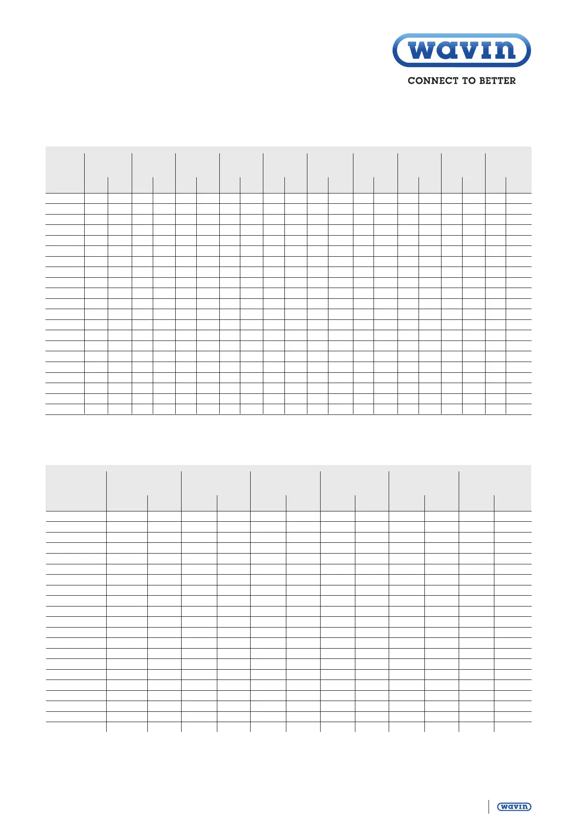 Table 16: Sizing table for underground and collector pipes using Wavin AS+, filling factor 0.7.