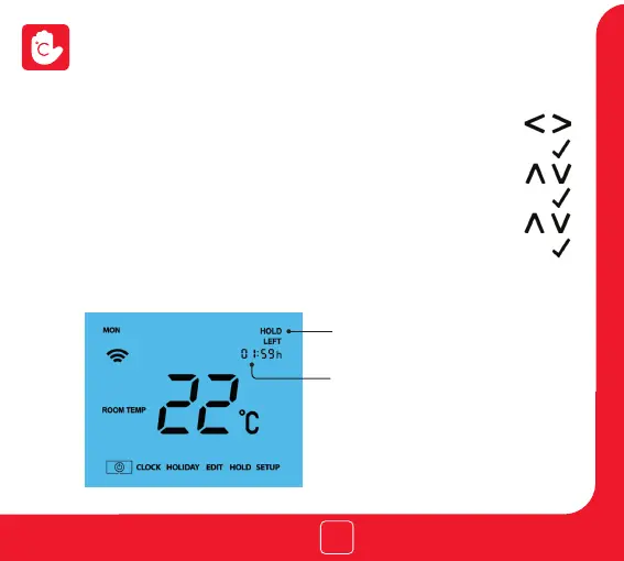 To cancel a temperature Hold, repeat these steps but reduce the Hold time to 00:00hrs.