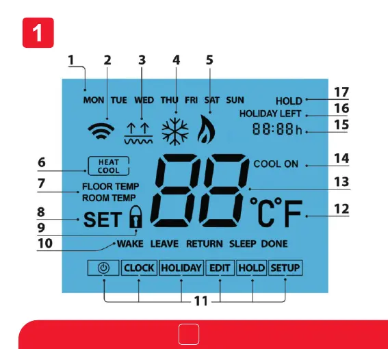 Holiday Left - Displayed when the thermostat is in holiday mode.16.