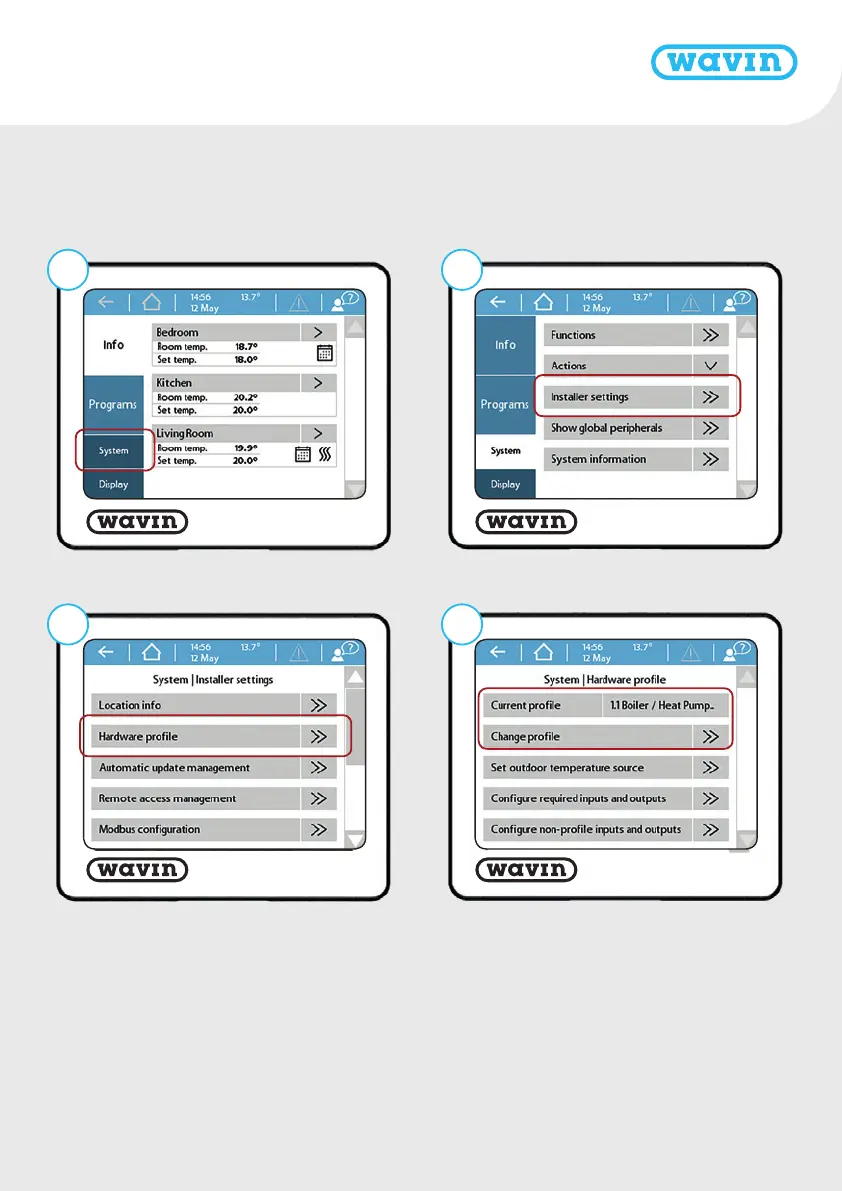 wavin Sentio - System Profile Selection; Navigate Profile Settings; Configure Hardware Profile; Change System Profile