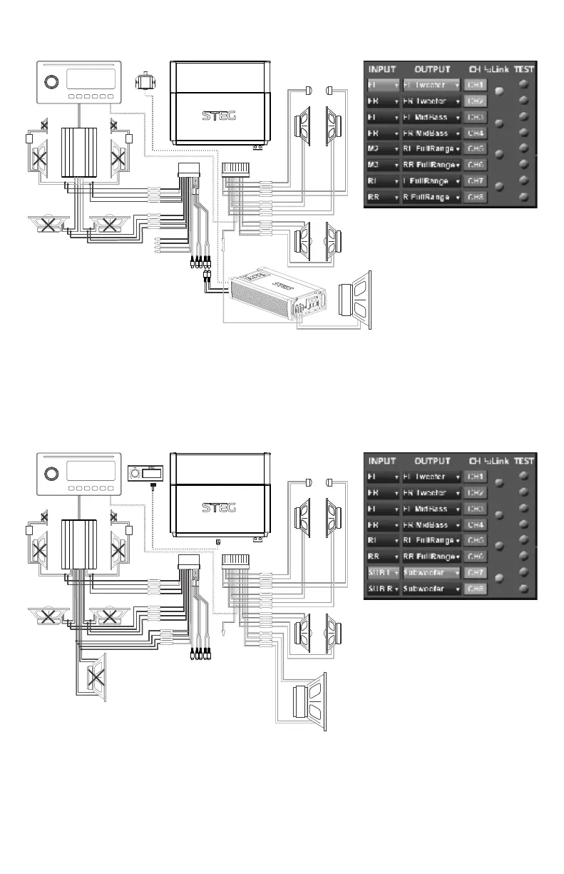 components and rear full-range speakers. For adding a subwoofer amplifier, the CH5/6 preouts may be
