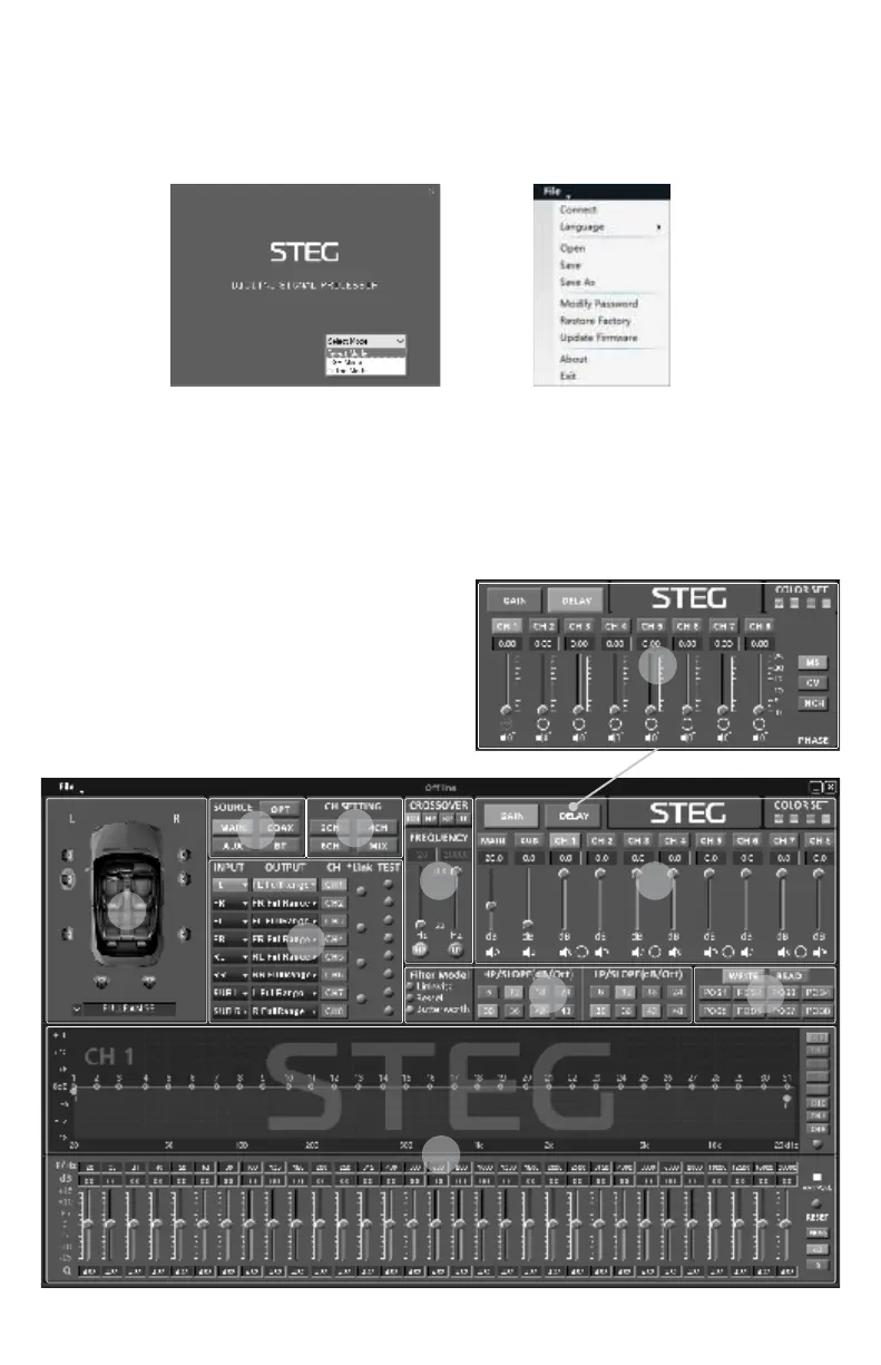 1.Install the PC software file “STEG DSP SETUP v1.0.1_EN-.exe” from the included USB flash drive.