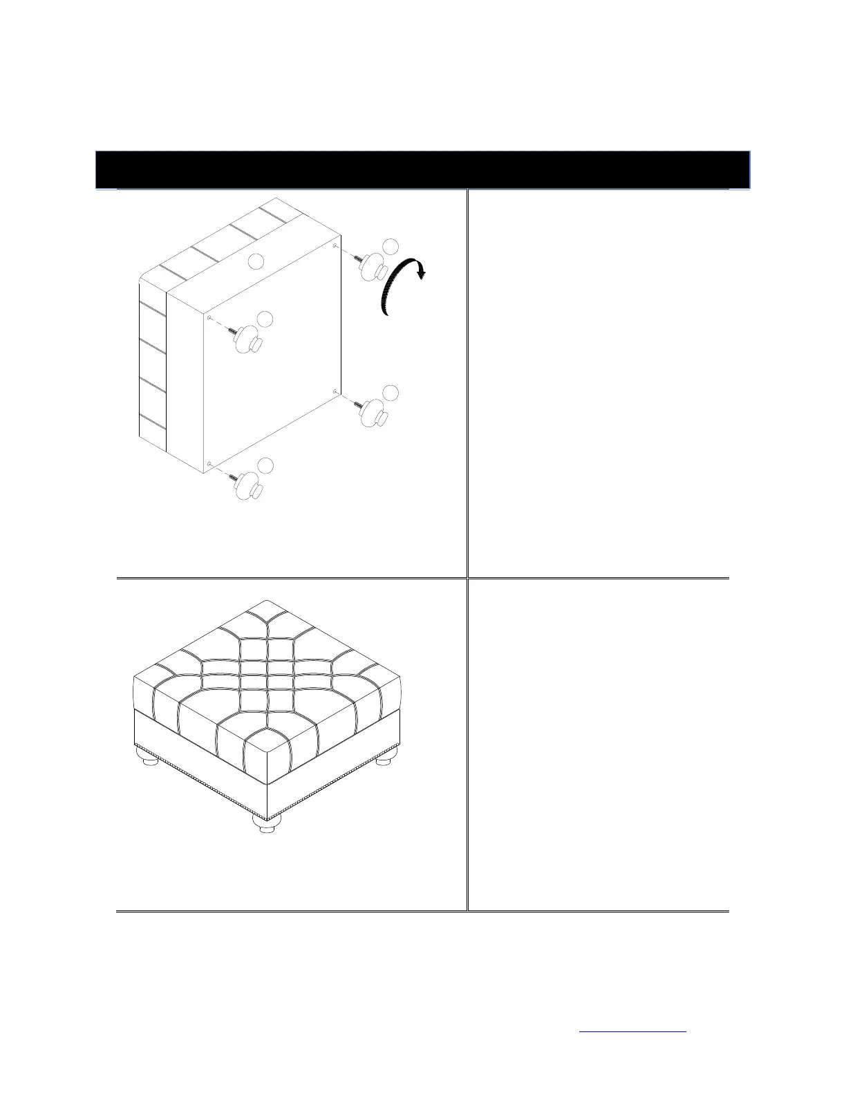 Wayfair OTTOMAN - Ottoman Assembly Steps; Attach Ottoman Legs; Final Ottoman Placement