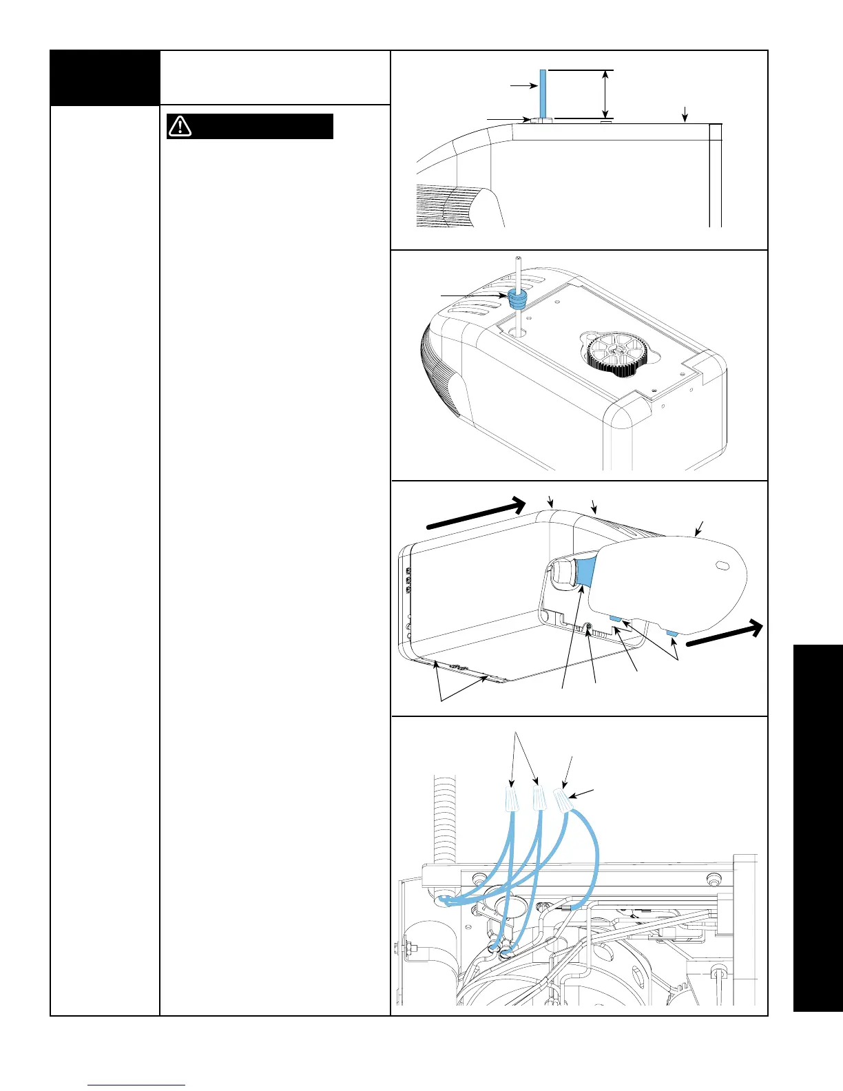 7. Pull the three wires into the opener;
