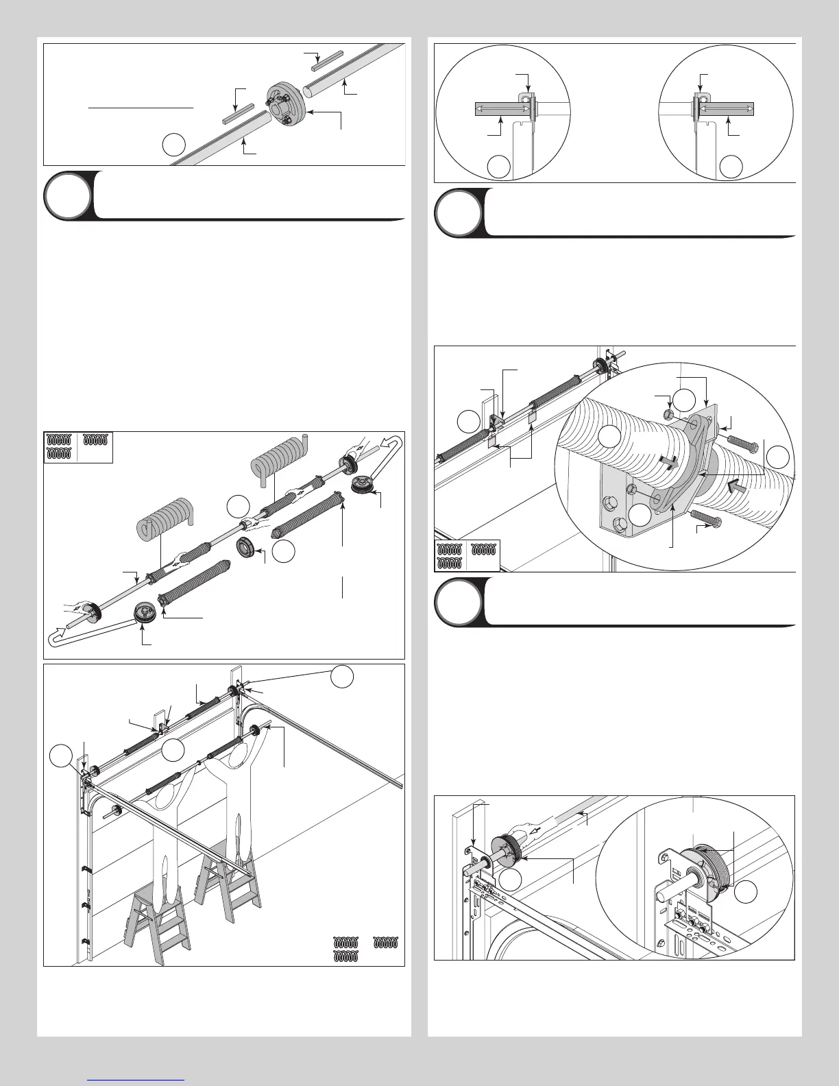 in the center bracket bearing assembly. Secure the torsion spring(s) to the center bracket