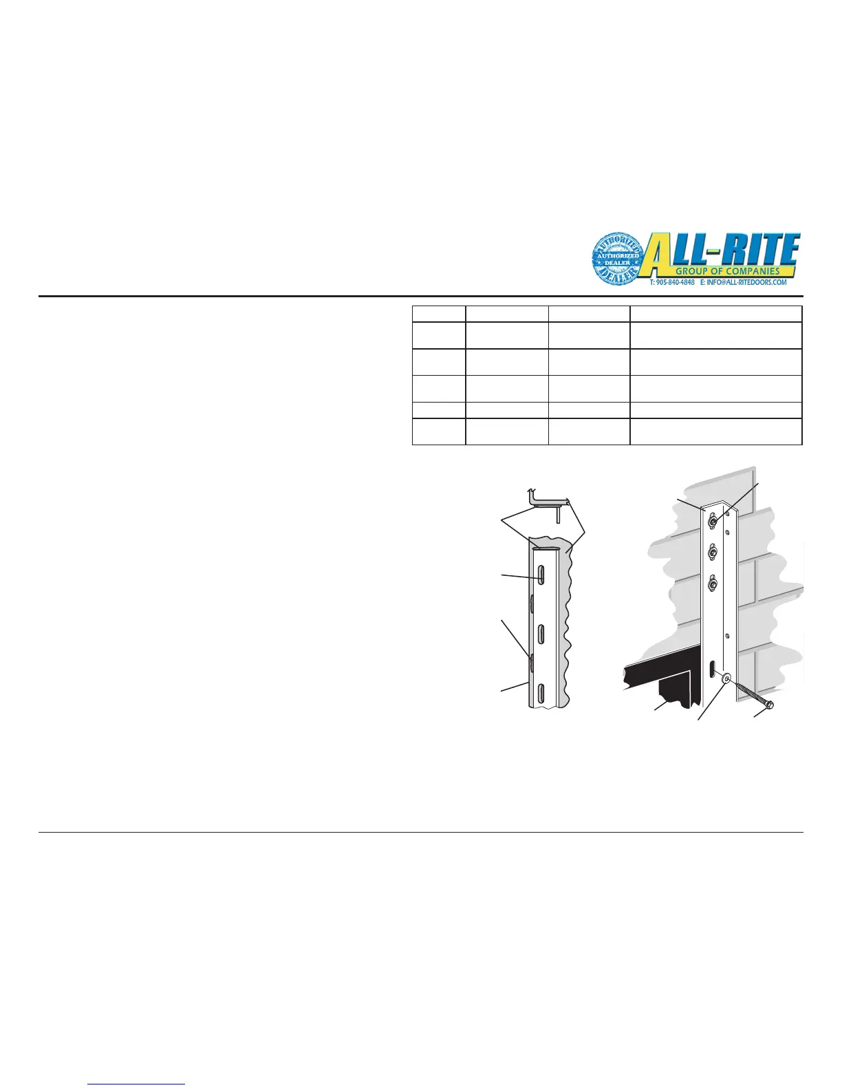 spacers or shims to ll the gap between the masonry portion of the wall and the wall