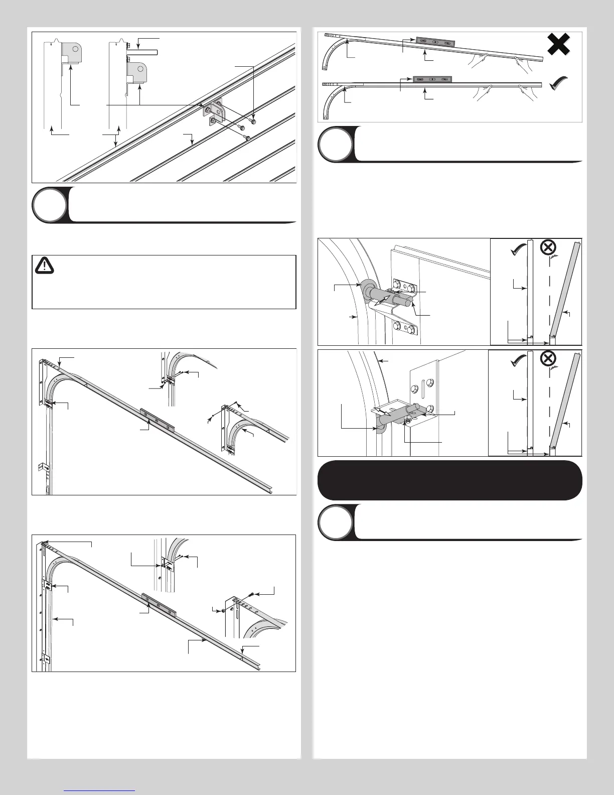 track roller of the top section. Align the bottom of the horizontal track with the top of the verti-