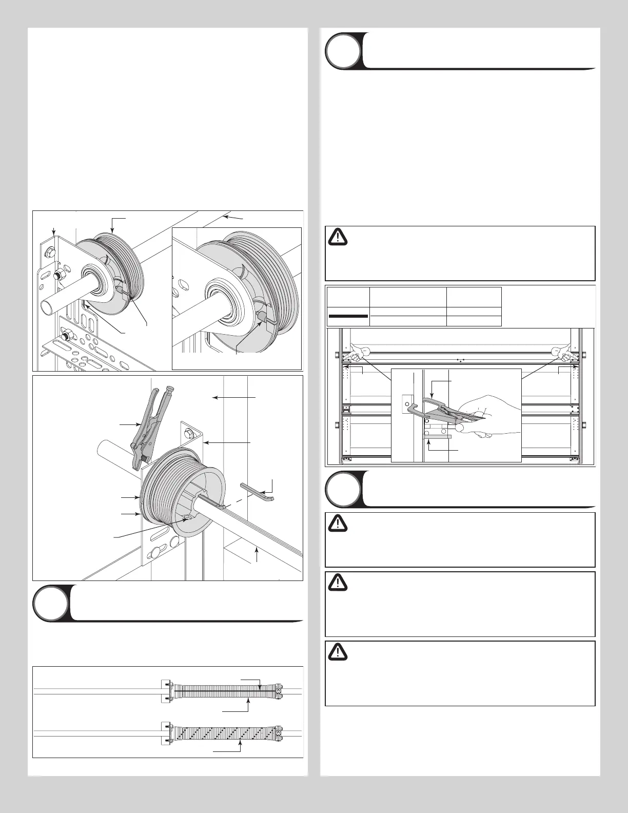 g. Review the label attached to the spring warning tag, to determine number of spring turns