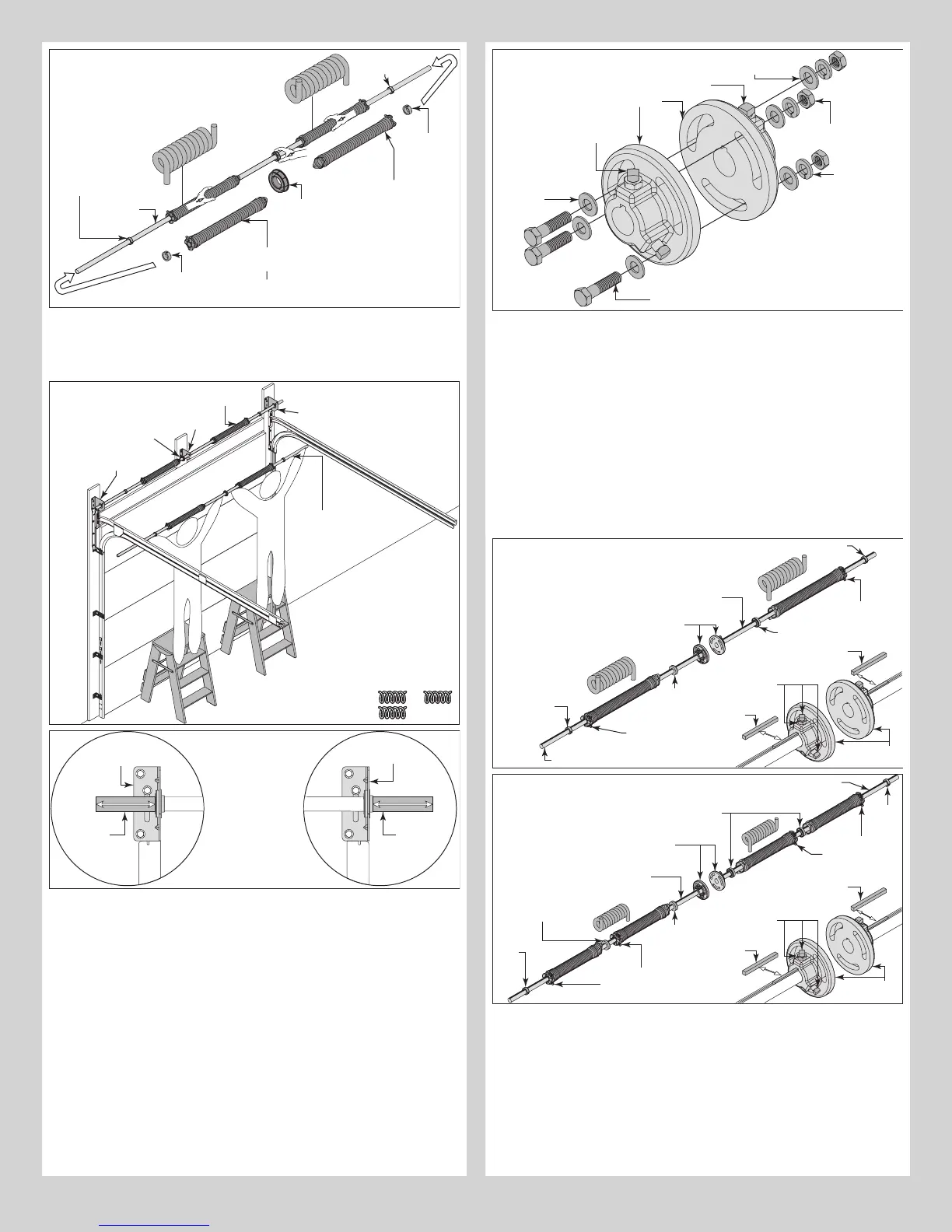 halves, center bearings onto the torsion keyed shafts followed by the torsion springs and the