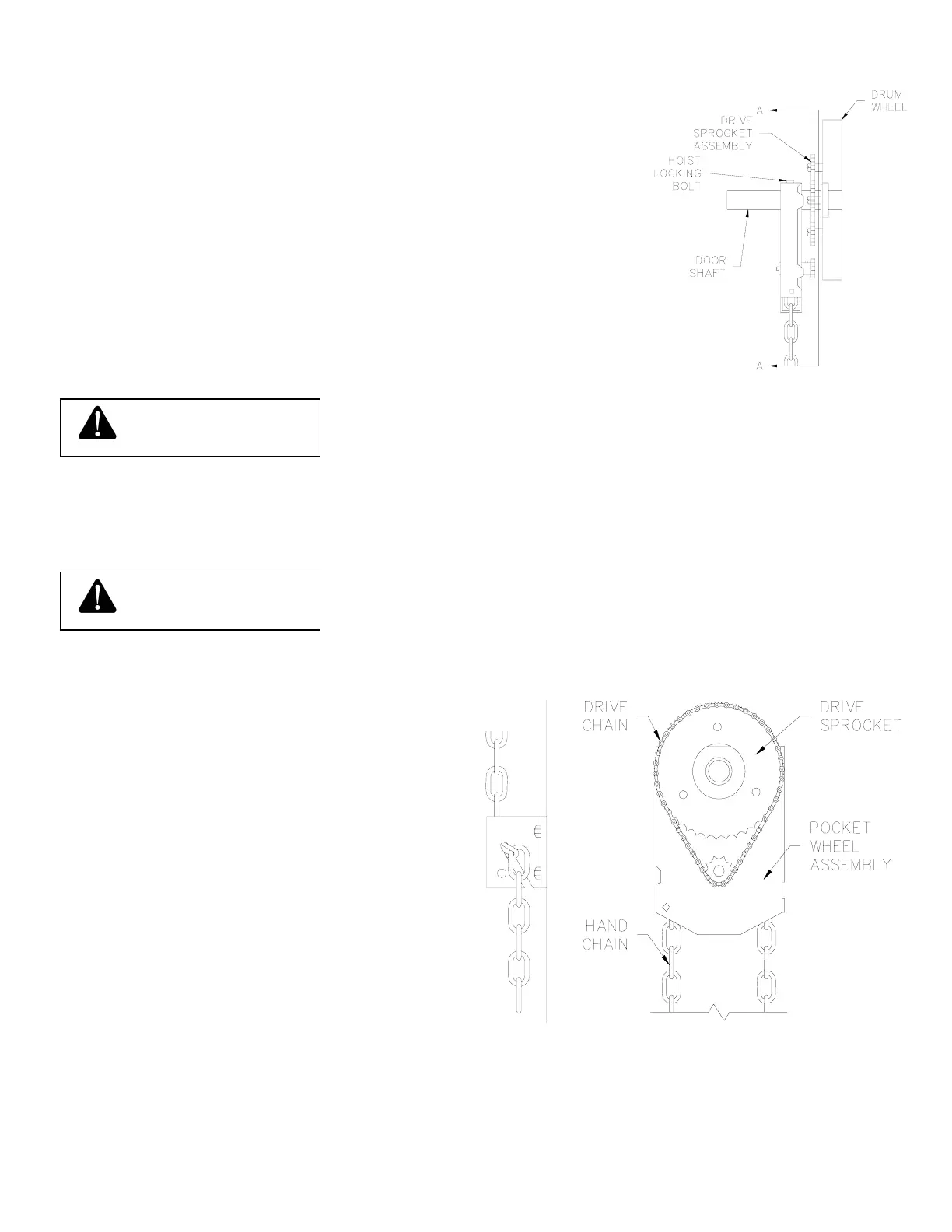 the door up and down several times to ensure that the roller chain does not come off. If it does, go back and check