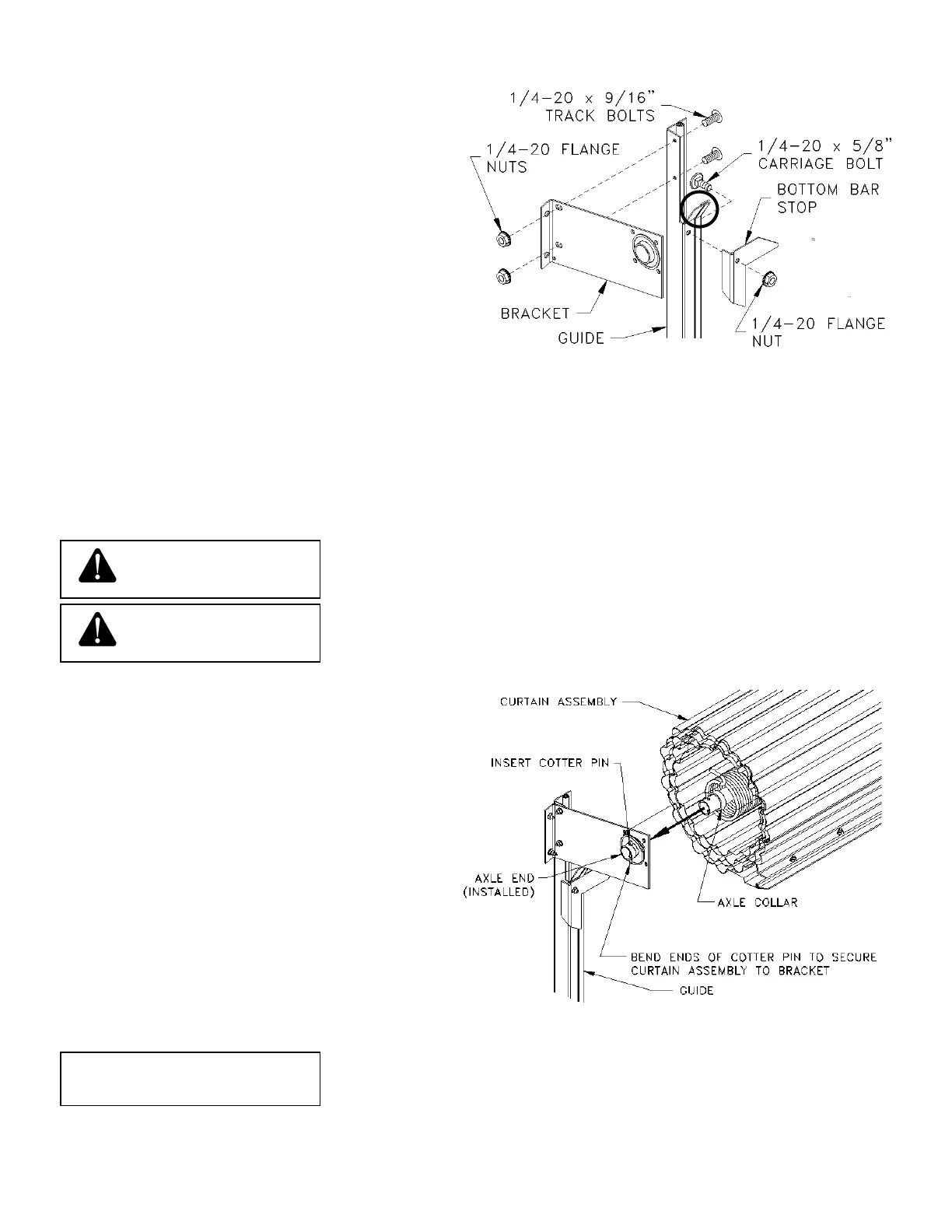 clearance for the curtain assembly axle end. Secure