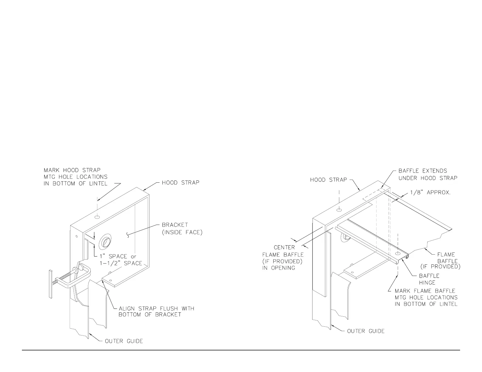 provided) under the lintel as shown in Figure #6B with the hinge to the back and centered between the hood straps. A clearance of 1/8” should be held from edge of the